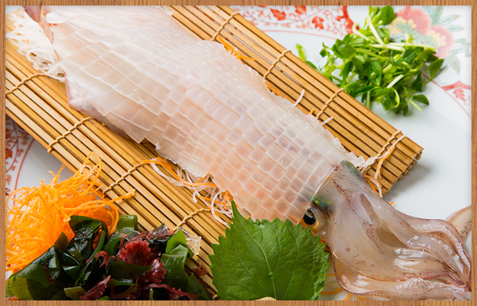 ともに、イカやエビを丸ごとプレスして作る"シ